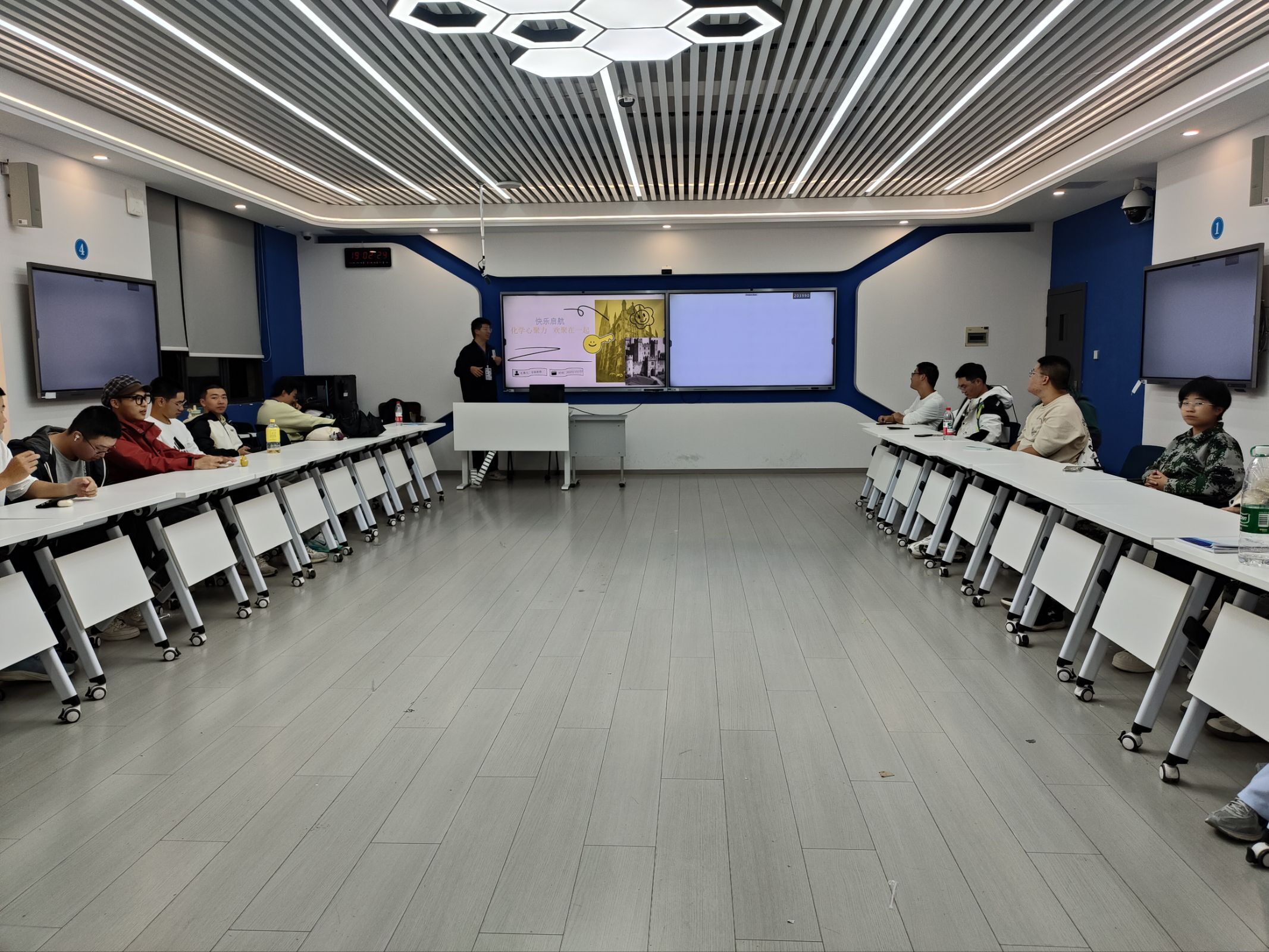 为帮助新生释放学习压力、增进彼此情谊、强化班级凝聚力,10月22日,化学强基2501班以“筑梦青春”为主题,开展班会暨团辅活动。本次活动由全体班助策划并主持,全班新生积极参与,沉浸式体验团队协作与情感交流,为大学生活注入温暖力量。