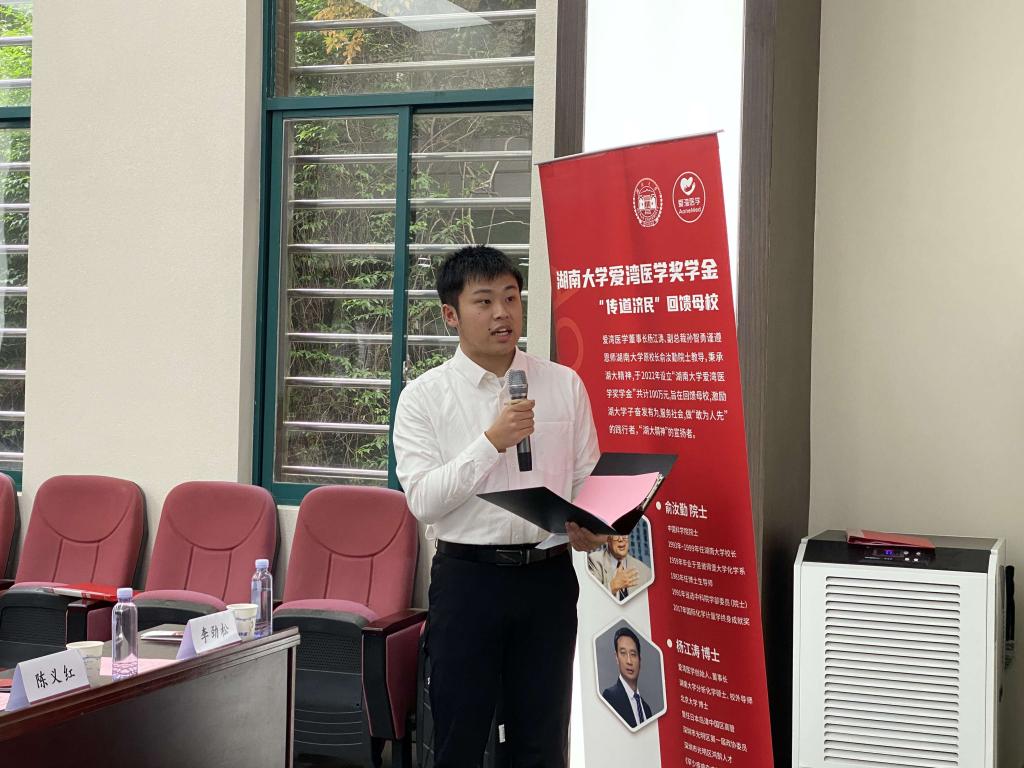 杨江涛学长以“不忘初心 组学数据创新精准诊疗”为题进行分享。回顾过往经历,杨江涛学长以敏感之心、坚韧之心、好奇之心进行概括总结,与同学们一同分享自己在湖南大学难忘的求学经历、就业创业期间艰难的探索路程、对母院及恩师的深厚情感以及爱湾医学科技集团创新研究成果及企业使命和愿景。妙趣横生的语言、悠扬动听的音乐让同学们沉浸其中,感悟良多。