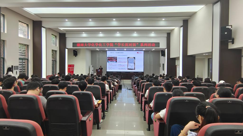 2023年4月20日下午,化学化工学院“学长面对面”活动在化学化工学院D区报告厅顺利举行。活动邀请到了化学化工学院1996级化学专业优秀院友、爱湾医学科技集团创始人杨江涛学长作为分享嘉宾。中国科学院院士俞汝勤、湖南大学深圳校友会常务副会长唐剑波、湖南大学深圳校友会工商管理分会常务副会长徐国辉、爱湾医学科技集团部分高管、化学化工学院党委副书记潘刚峰出席本次活动。化工院200余名学生参与活动。