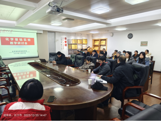 为全面贯彻落实新时代全国高等学校本科教育工作会议精神,着力强化湖南大学基层教学组织的建设成效,切实提升实验课堂教学效果与实践课程育人能力,化学基础实验教研室于12月20日下午2:30在新化工楼D204召开了2023年秋季学期期末实验教学研讨会。会议由基础分析化学实验课程负责人李昆老师主持,李永军副院长出席并发言,二十余位来自实验中心、化学系和化学生物学系并参与化学基础实验教学工作的教师参与了此次会议,共同针对本学期工作的总结与安排和学科竞赛的规划与实施进行了深入研讨。