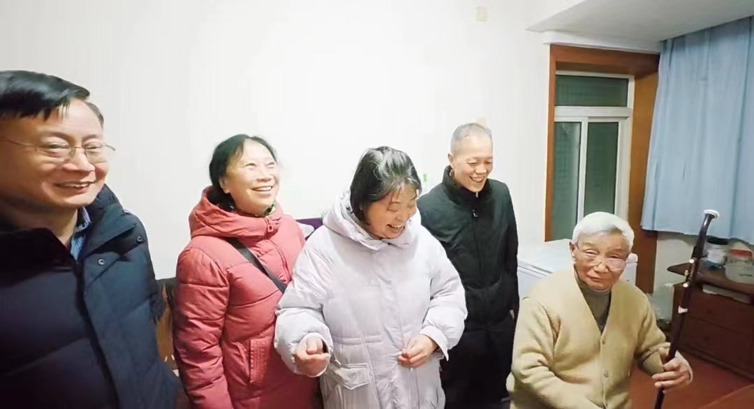 慰问组每到一户,都亲切探望老同志的身体及生活状况,了解他们的实际困难,解答他们对学校学院发展和其他同事近况的询问,嘘寒问暖送上慰问品及2024年的新春祝福。老同志则热情接待慰问组成员,对学院及党组织的温暖关爱表示衷心感谢。在看望陈于年老师时,他拿出自己新研发的陶瓷滤芯,讲解原理和功能,并托慰问组将滤芯样品带回学院做进一步研究,其身老志不老的钻研精神令人钦佩。慰问梅焕谋老师时,老人兴致勃勃地拿出二胡与慰问组成员一起伴奏合唱《我和我的祖国》等歌曲,欢快融洽的气氛将慰问活动推向高潮。