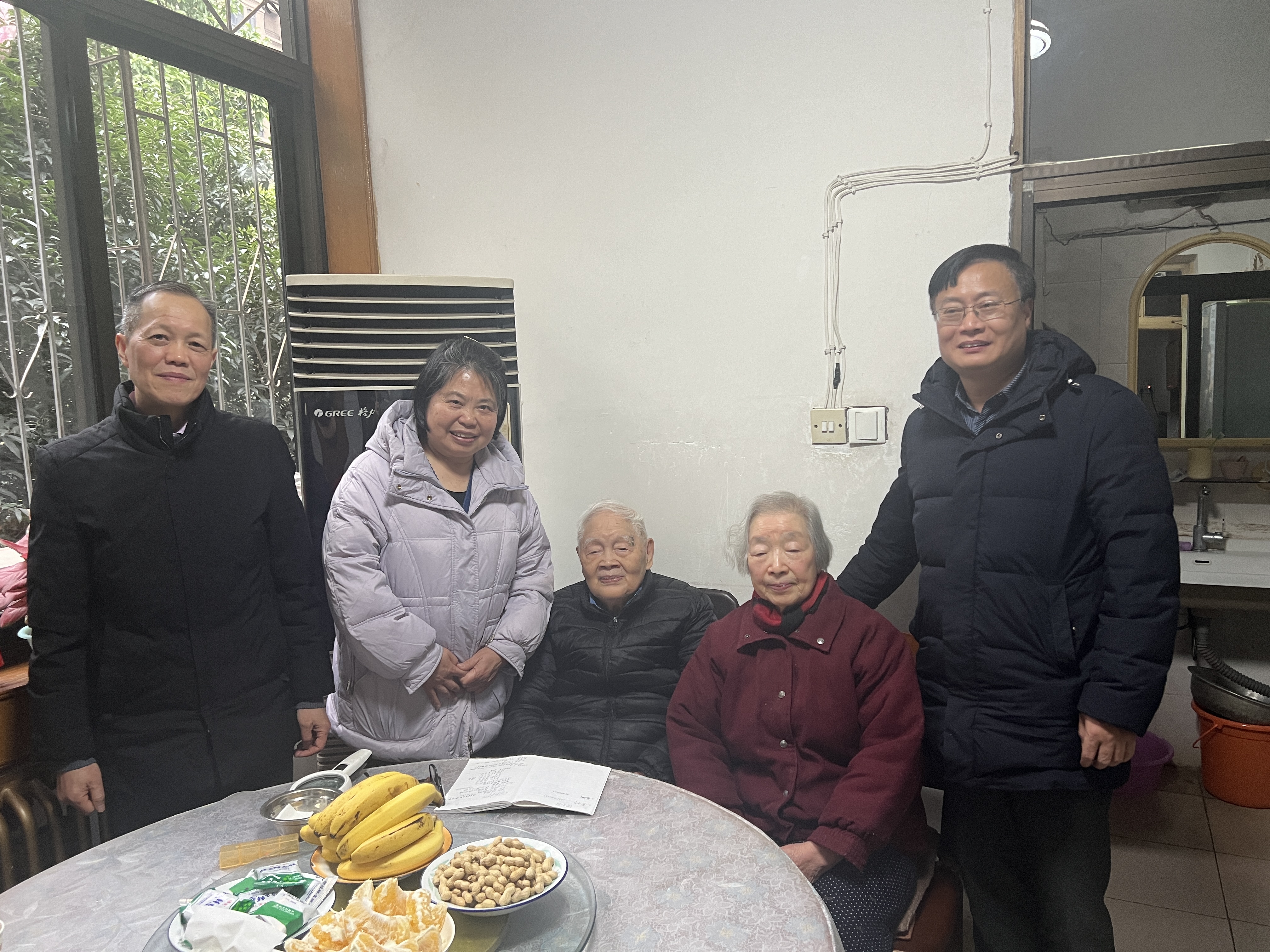 2024年1月17日,腊八节前的长沙寒风料峭,细雨蒙蒙。化学化工学院联合化学化工和生物退休党支部慰问组在学院副院长陈四海及支部书记曾鸽鸣带领下,对学院校内、校外老党员、院士、高龄行动不便、重病患者及长期生病住院的老同志开展了2024春节关怀上门送温暖慰问活动,传递党组织和学院对离退休党员和教职工的关心与问候。