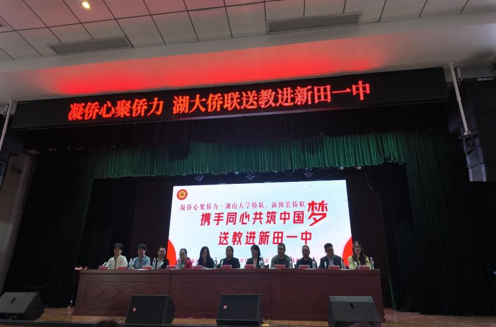 3月22日至23日,湖南大学侨联、中共新田县委统战部、新田县侨联携手在永州市新田一中开展了“携手同心共筑中国梦·送教进校园”活动。参与本次活动的有:湖南大学归国华侨联合会副主席、湖南大学材料学院刘海蓉教授,湖南大学归国华侨联合会副主席、秘书长、华亿体育(中国)官方网站刘松教授,湖南大学材料科学与工程学院院教学办主任孙培红、湖南大学材料科学与工程学院彭鸣副教授、华亿体育(中国)官方网站崔承副教授,华亿体育(中国)官方网站分团委书记蒋晓洁,湖南大学材料学院辅导员兼学院招生干事周新洋,还有来自材料学院与化工学院的9名青年学生代表们。