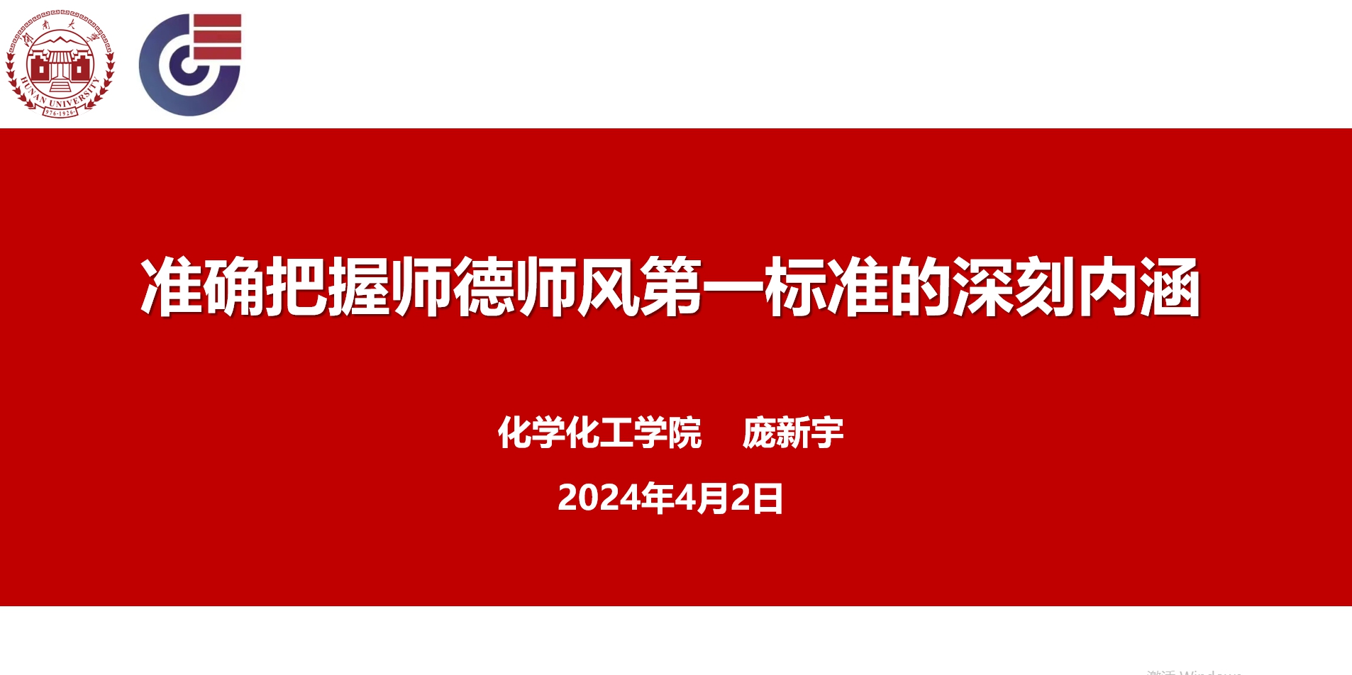 庞新宇作了题为“准确把握师德师风第一标准的深刻内涵”的分享,作为高校教师,我们要大力弘扬教育家精神,树牢师德师风第一标准,全员、全方位、全过程涵养优良师德师风,以优良的师德师风催生出优良的教风,带动优良的学风,形成优良的校风。我们要按照学校第十次党代会报告要求,坚持把师德师风建设作为教师队伍建设的第一标准和首要任务,一体推进教师思政引领、学术诚信、导师职责、师德教育,引导教师做学生为学、为事、为人的示范。