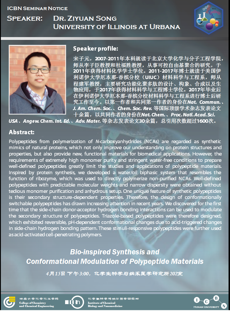 2019年4月15日伊利诺伊大学厄本那香槟分校宋子元博士学术报告会