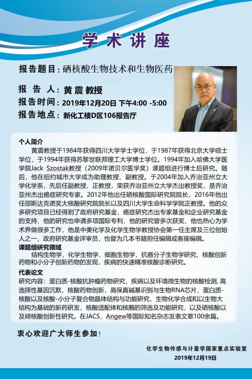 2019年12月20日乔治亚州立大学黄震教授学术报告会